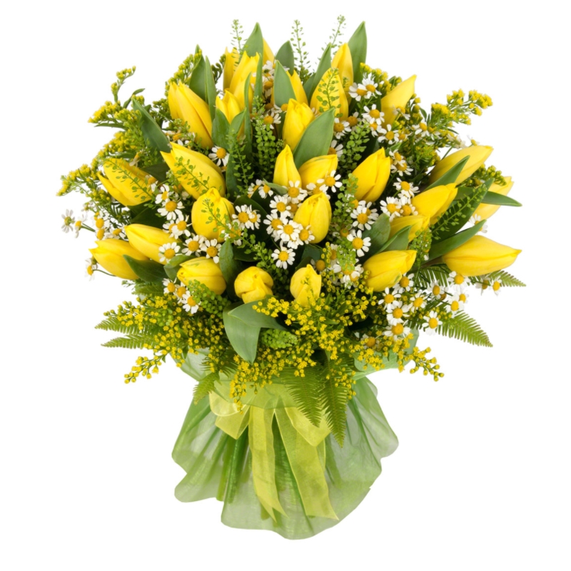 Мимоза 6 шт., Танацетум 4 шт., Тюльпан 31 шт. |